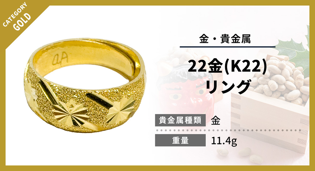 今回のお品物は、純金に近い高品位を誇る22金(K22)のリング。